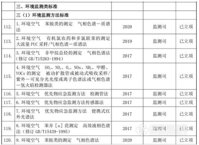 儀器信息網(wǎng)編輯摘錄環(huán)境監(jiān)測類標(biāo)準(zhǔn)規(guī)劃及儀器標(biāo)準(zhǔn)清單如下,更多信息請見國家環(huán)境保護標(biāo)準(zhǔn)“十三五”發(fā)展規(guī)劃.pdf。