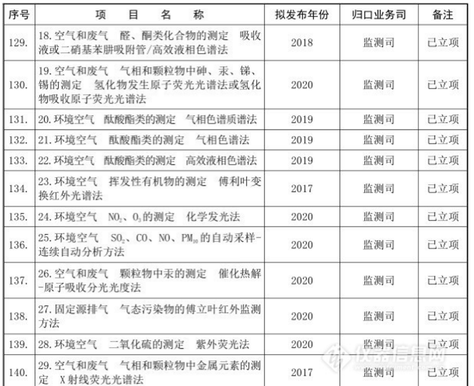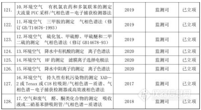 十三五”國家環(huán)境保護標(biāo)準(zhǔn)制修訂項目清單(儀器部分)